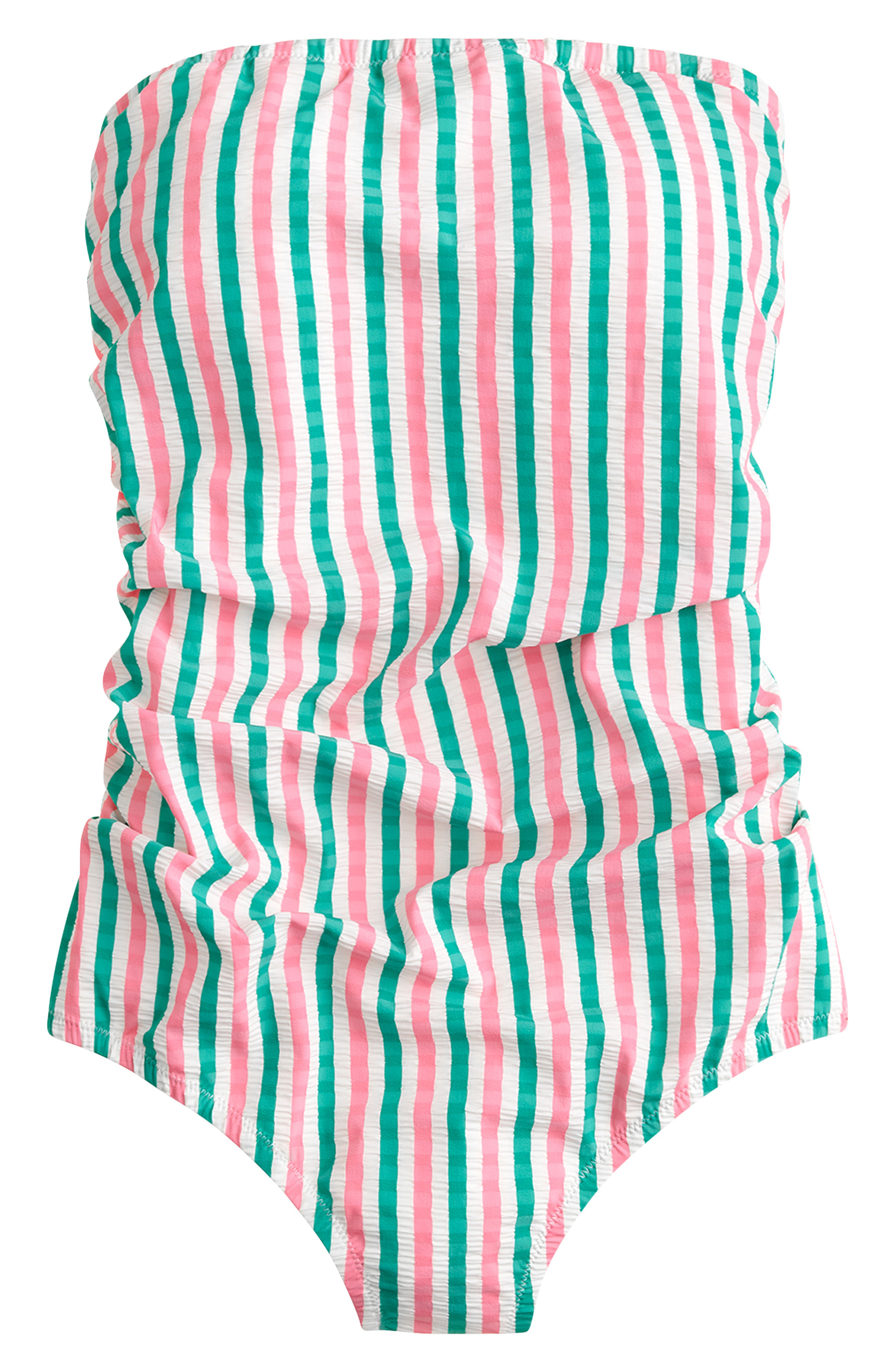J Crew Puckered Stripe Ruched Bandeau One Piece Swimsuit In Pink Green Stripe Modesens